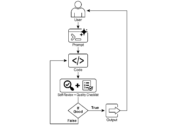 有了这项任务,AI 程序员开始工作并生成第一版代码草稿。然而,它没有立即提交这个初始版本,而是暂停执行一个关键步骤:严格的自我审查。它仔细地将自己的创作与你提供的质量检查清单上的每一项进行比较,充当自己的质量保证检查员。在这次检查之后,它对自己的进度做出一个简单、无偏见的判断:如果工作满足所有标准则为"True",如果不足则为"False"。